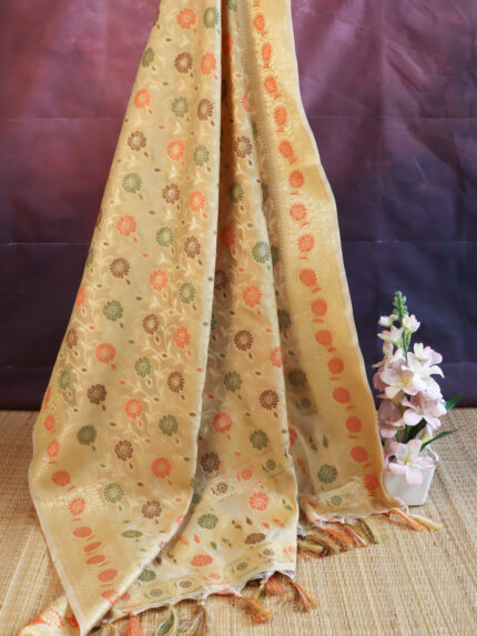 Banarasee Cotton Silk Jaal Design Dupatta-Beige