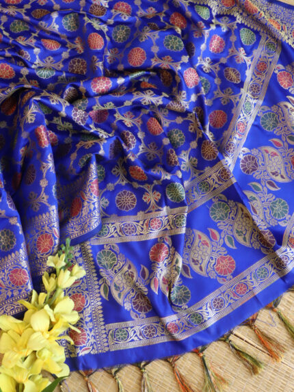 Banarasee Cotton Silk Jaal Design Dupatta-Royal Blue