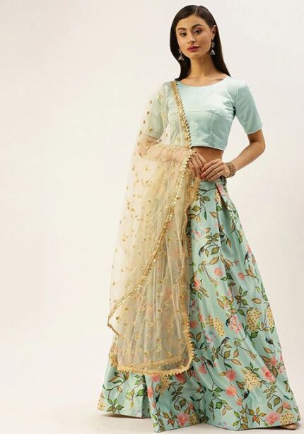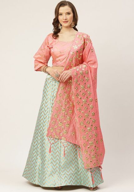 Sea Green Woven Zari Silk Blend Lehenga Set