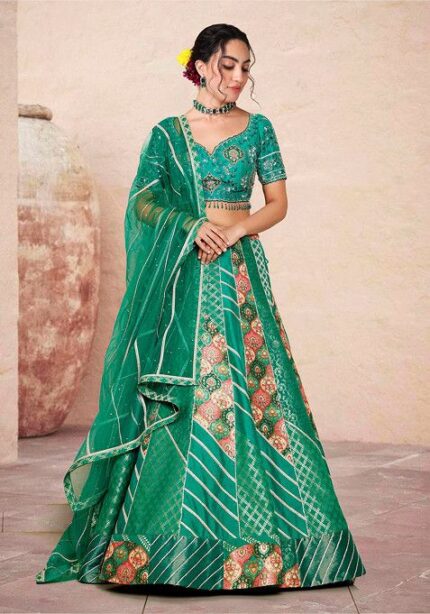 Green Lehenga Set With Hand Embroidered Blouse And Dupatta
