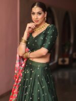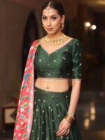 Banarasee Chanderi Silk Lehenga & Blouse With Crepe Silk Dupatta-Olive Green ₹7,999.00 – ₹8,499.00Price range: ₹7,999.00 through ₹8,499.00