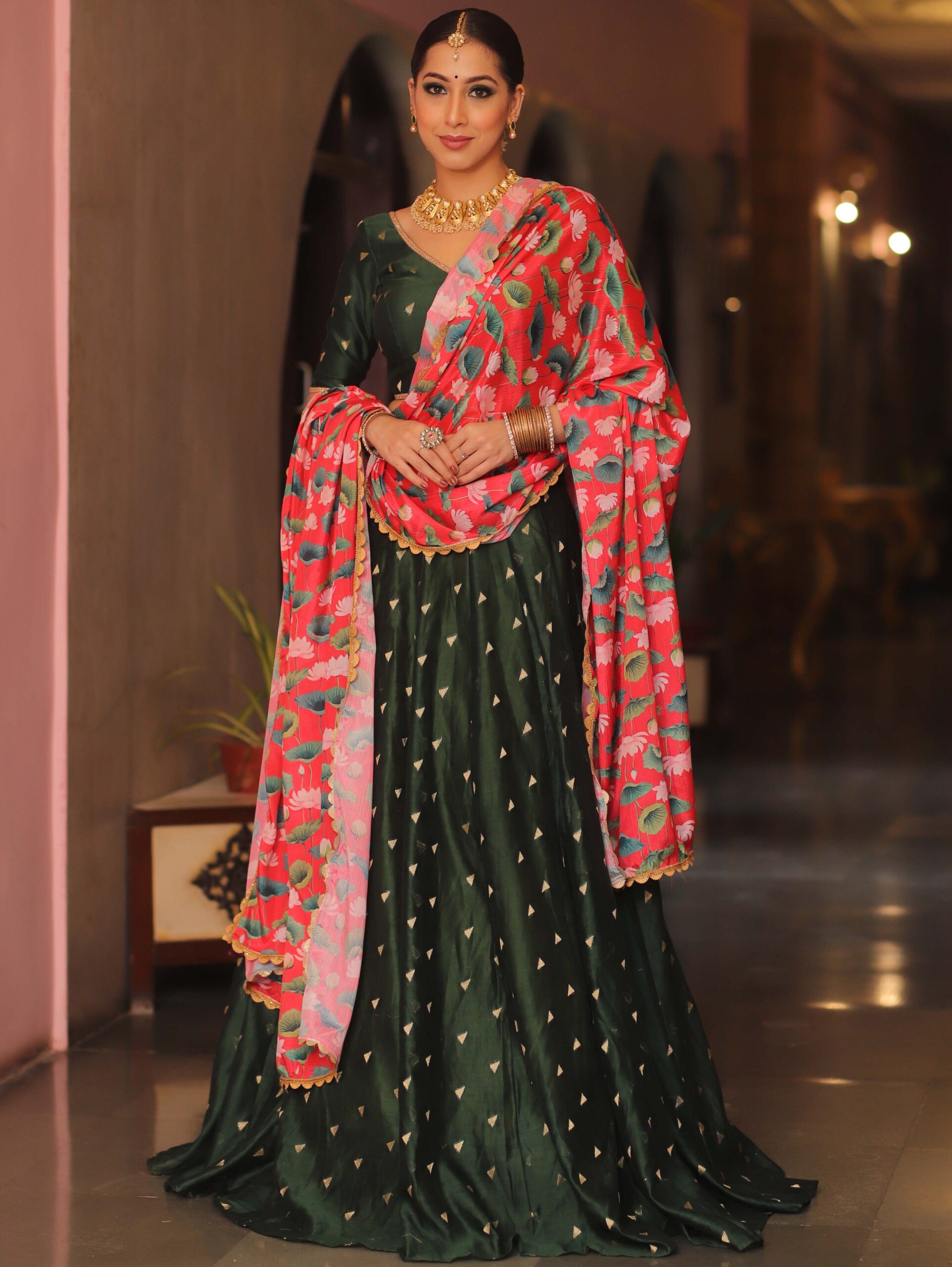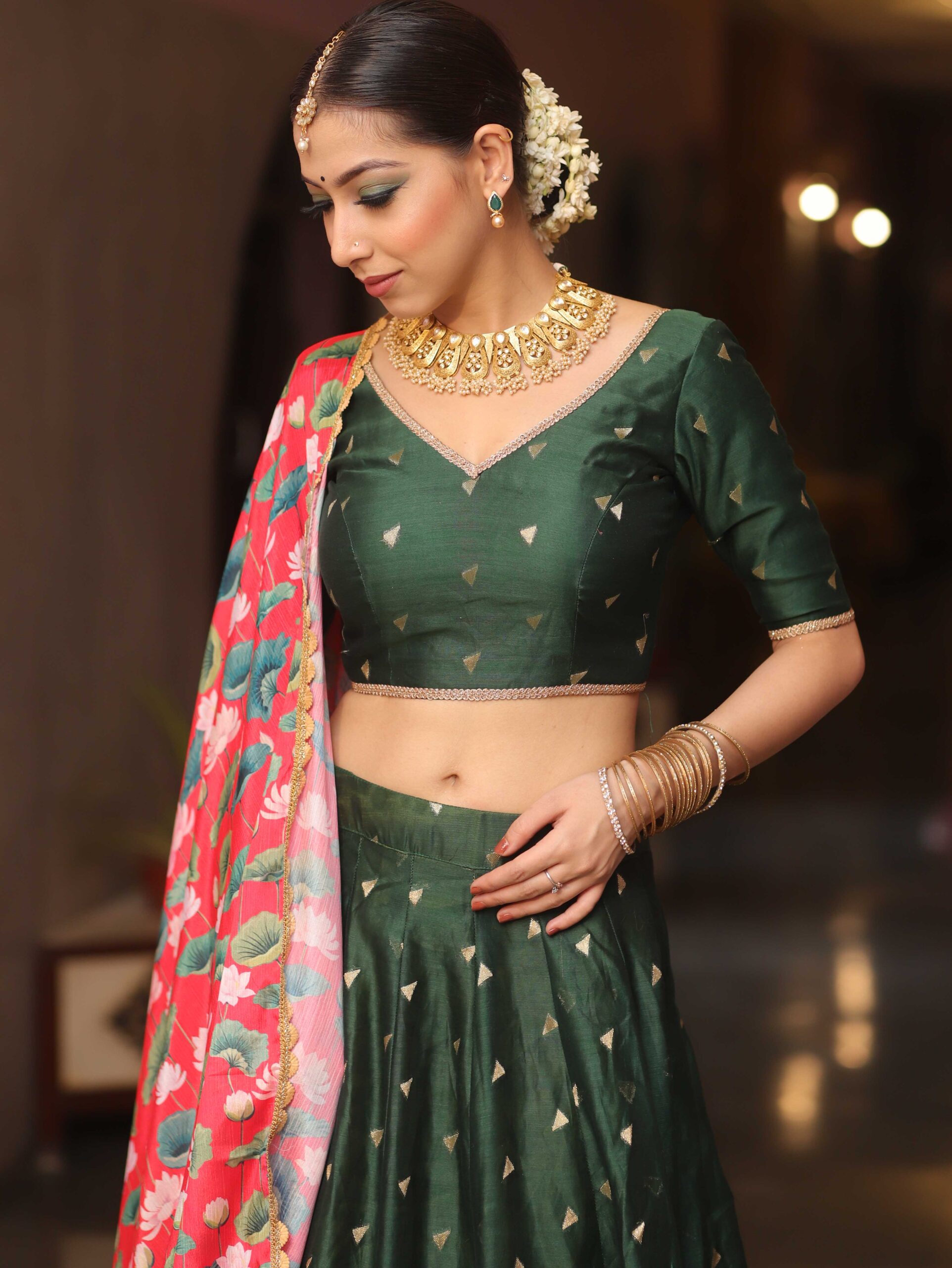 Agnes – OLIVE GREEN LEHENGA SET