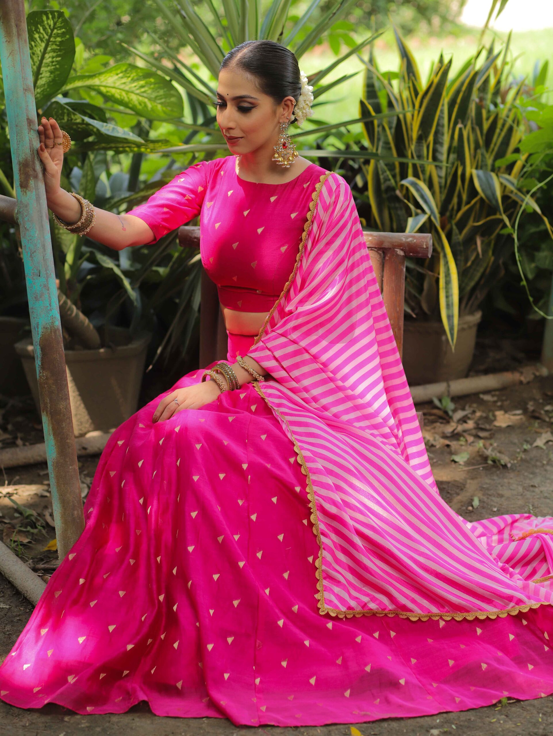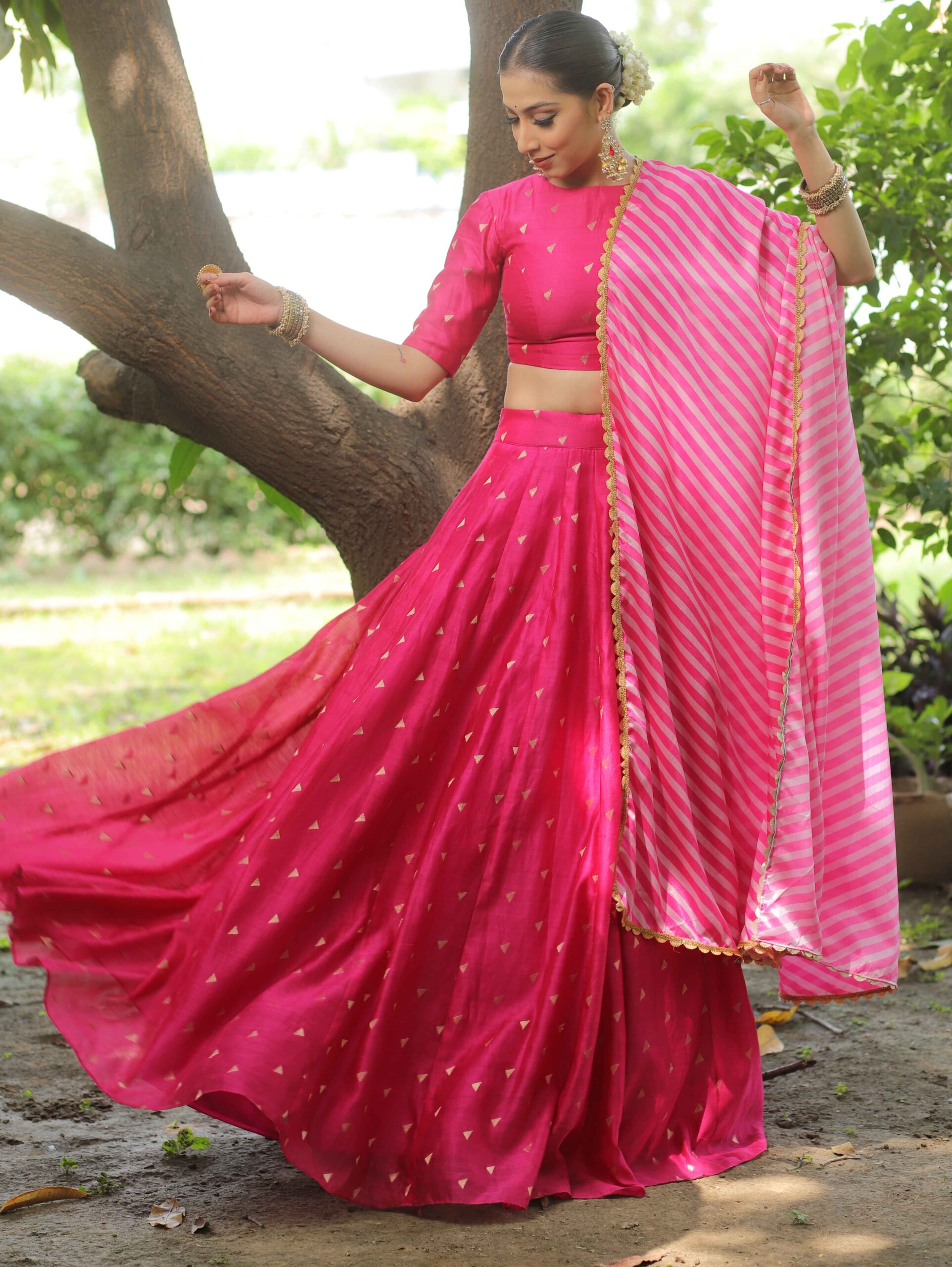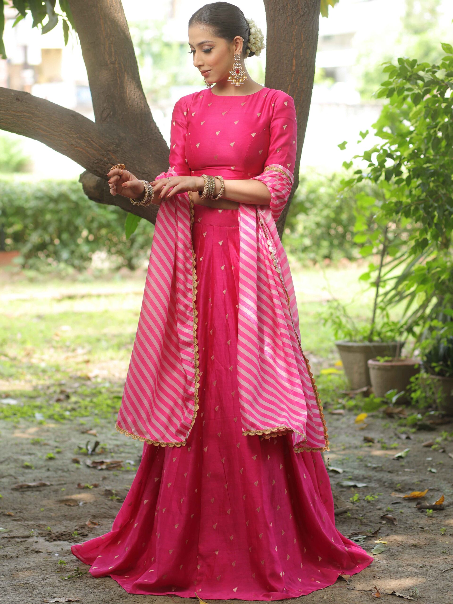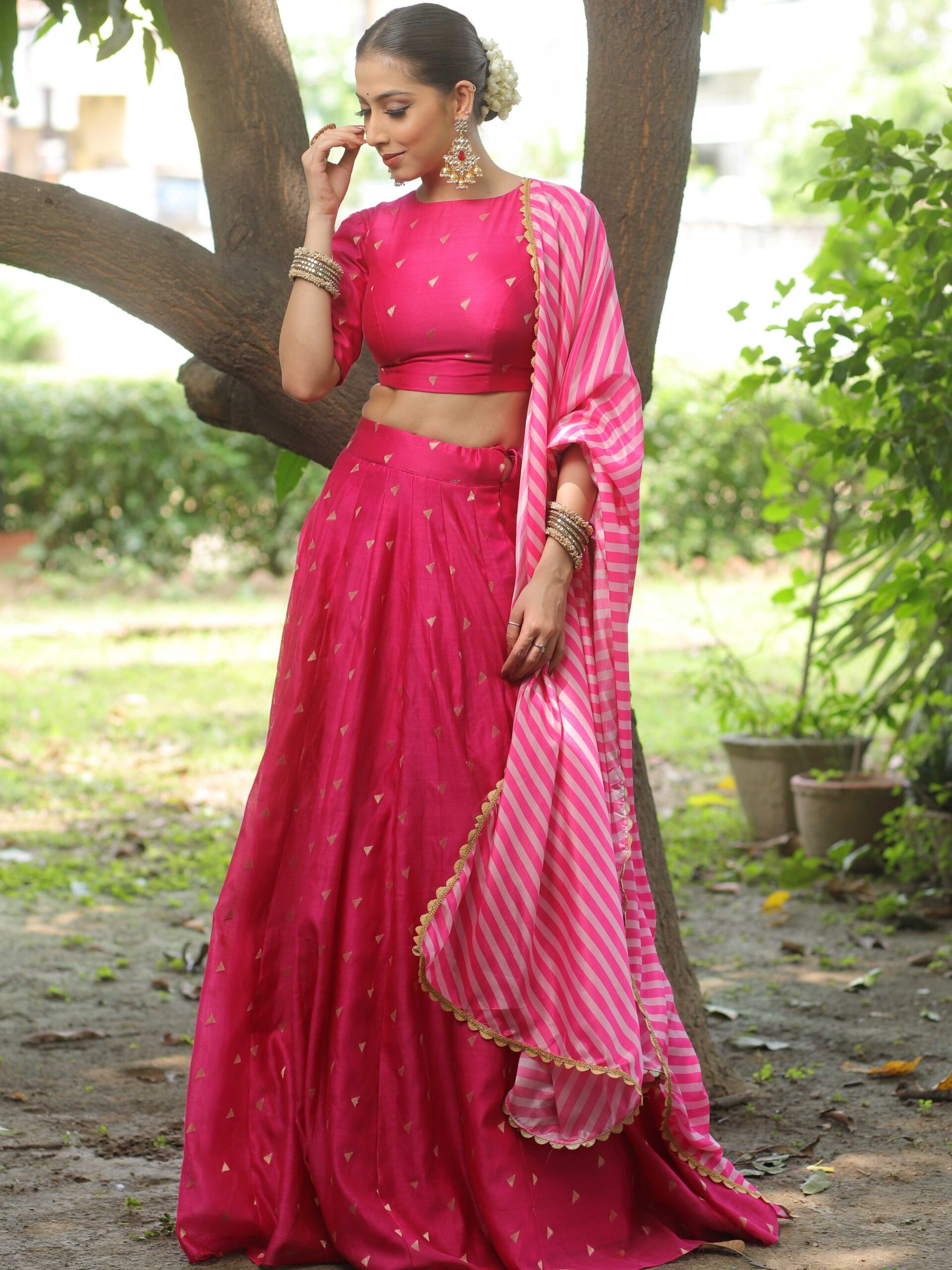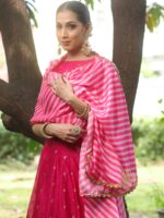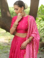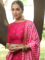 Be the first to review “Banarasee Chanderi Silk Lehenga & Blouse With Crepe Silk Dupatta-Pink” Cancel reply