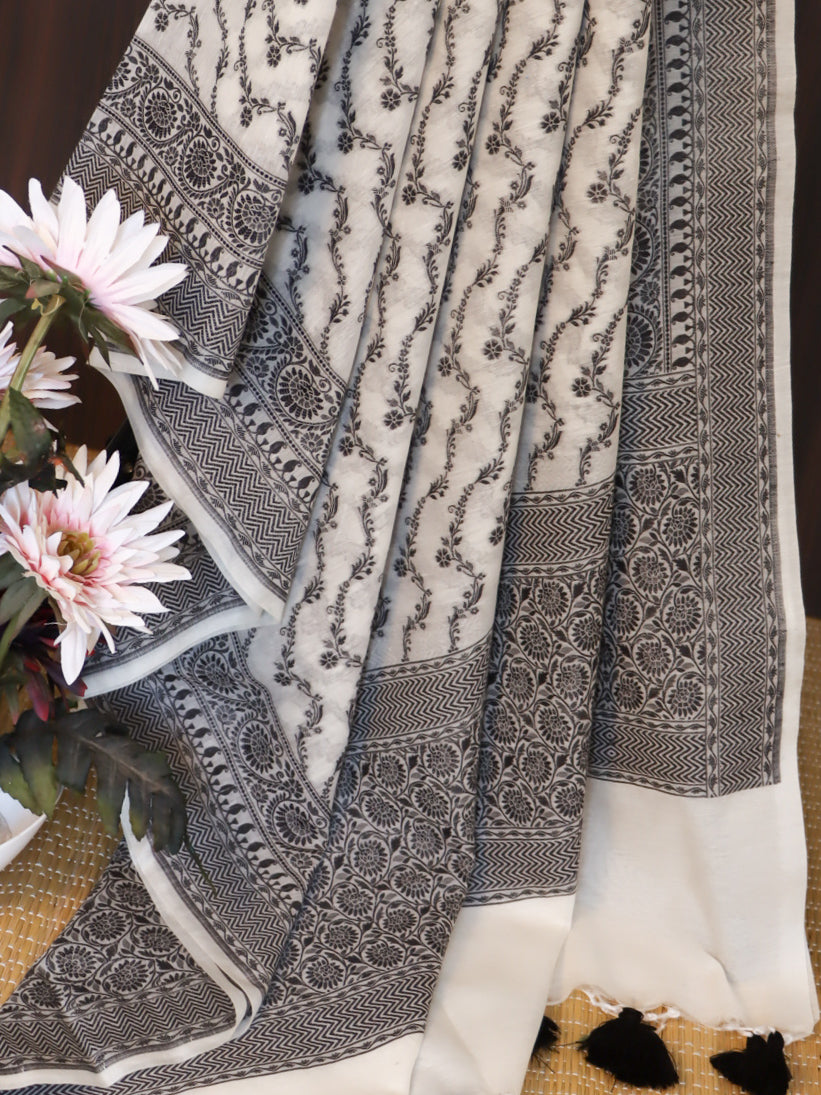 Home Dupatta Banarasee Cotton Resham Work Dupatta-White