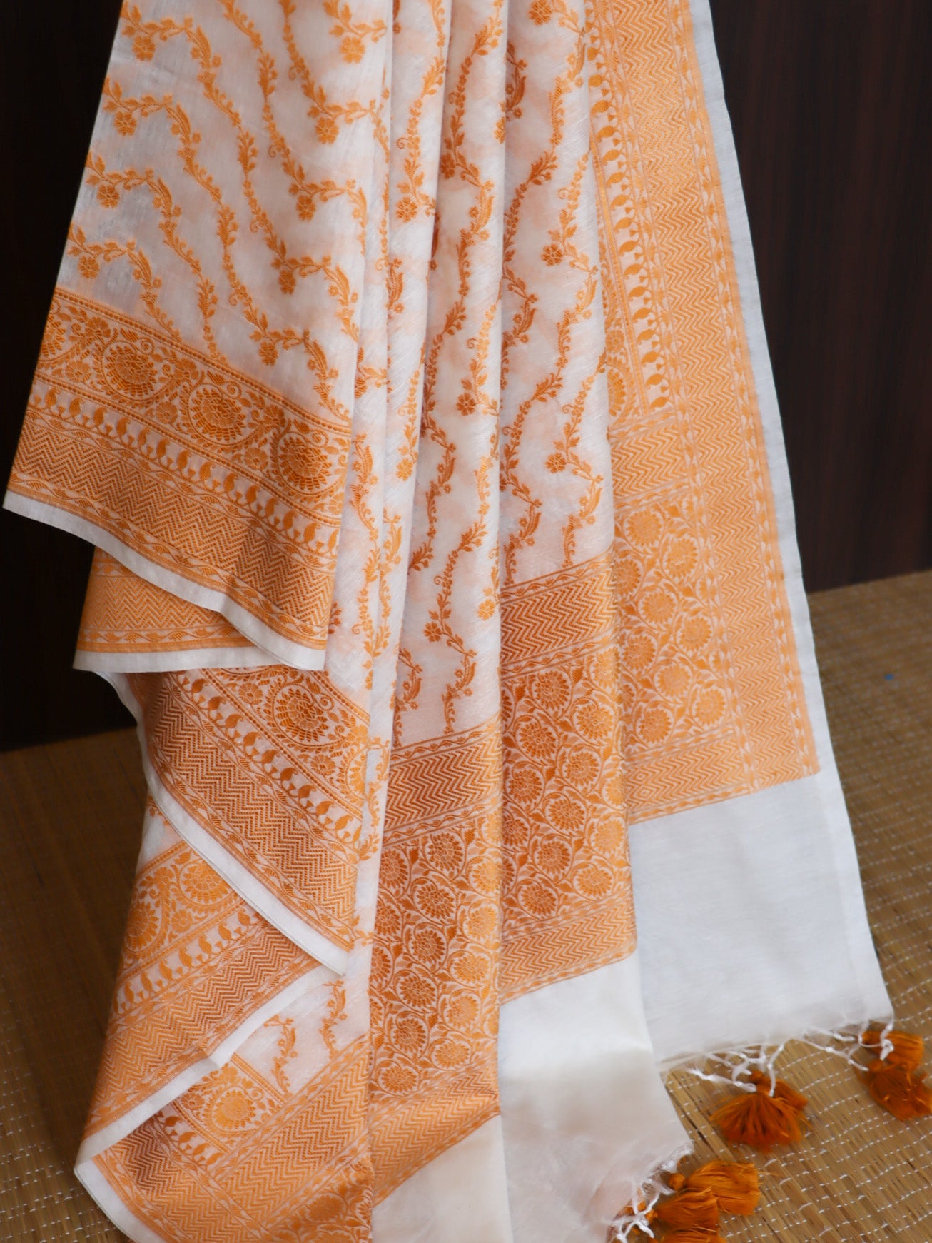 Home Dupatta Banarasee Cotton Resham Work Dupatta-White
