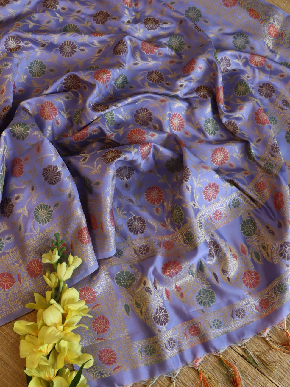 Banarasee Cotton Silk Dupatta With Zari Jaal Design & Lace-Purple ₹1,499.00