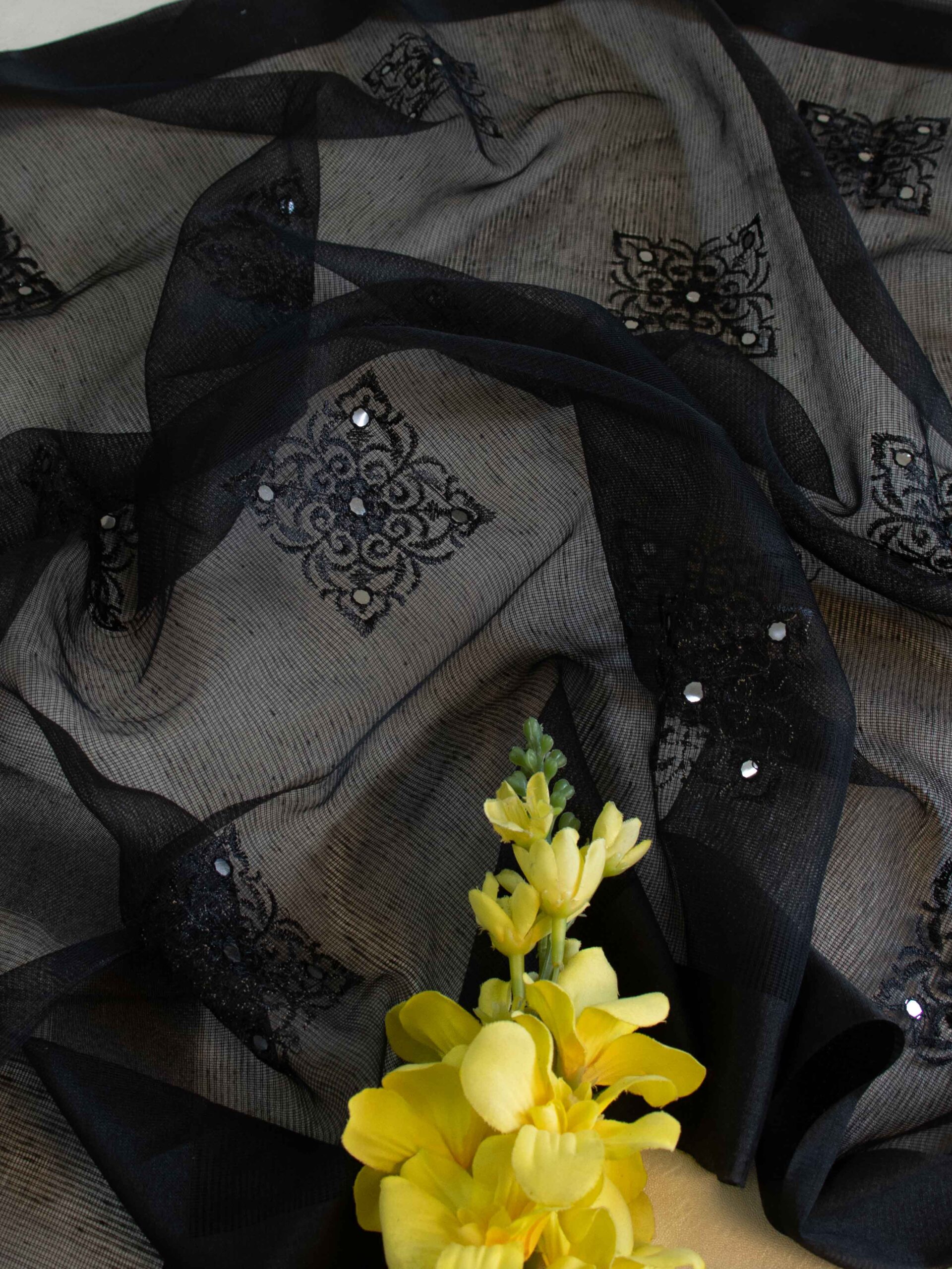 Be the first to review “Banarasee Cotton Silk Kota Check Embroidered Buta & Mirror Work Dupatta-Black” Cancel reply