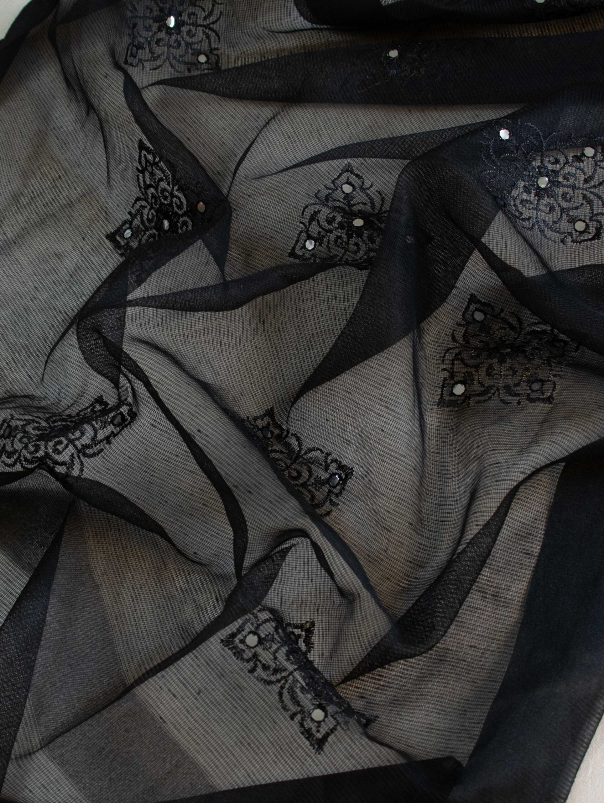 Home Dupatta Banarasee Cotton Silk Kota Check Embroidered Buta & Mirror Work Dupatta-Black