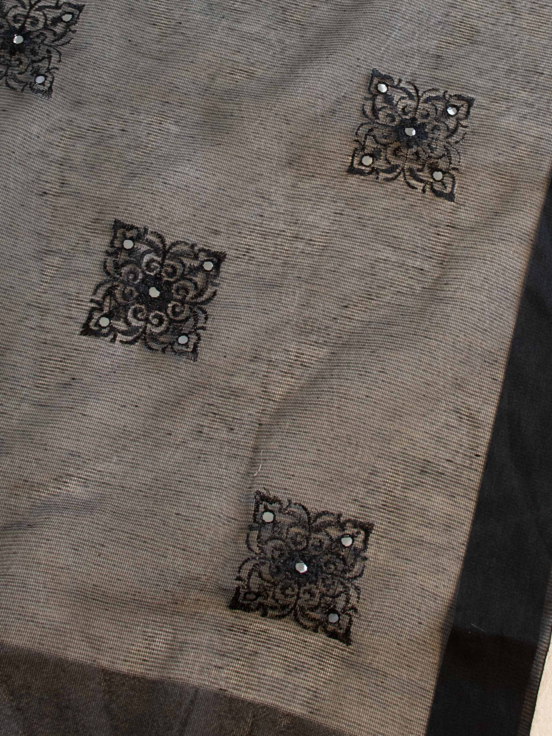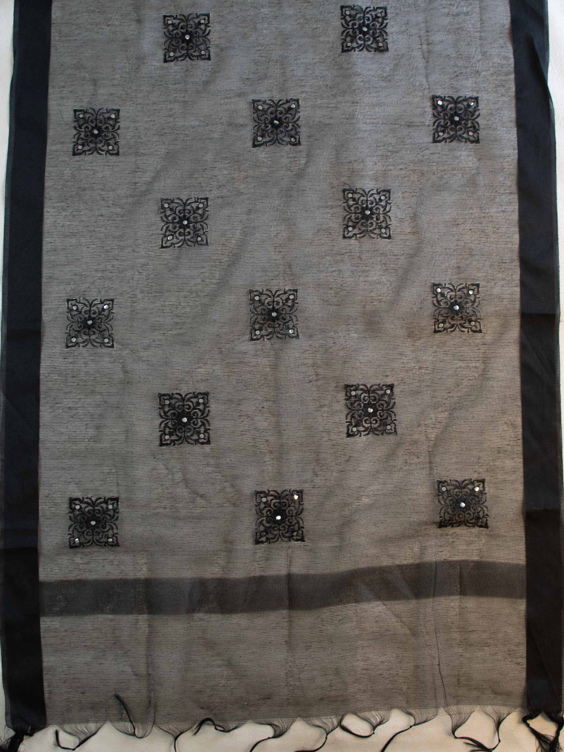 Banarasee Cotton Silk Kota Check Embroidered Buta & Mirror Work Dupatta-Black