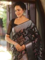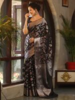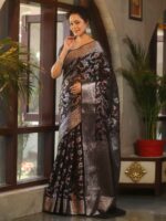 Be the first to review “Banarasee Faux Georgette Saree With Sliver Zari & Resham Jaal Work-Black” Cancel reply