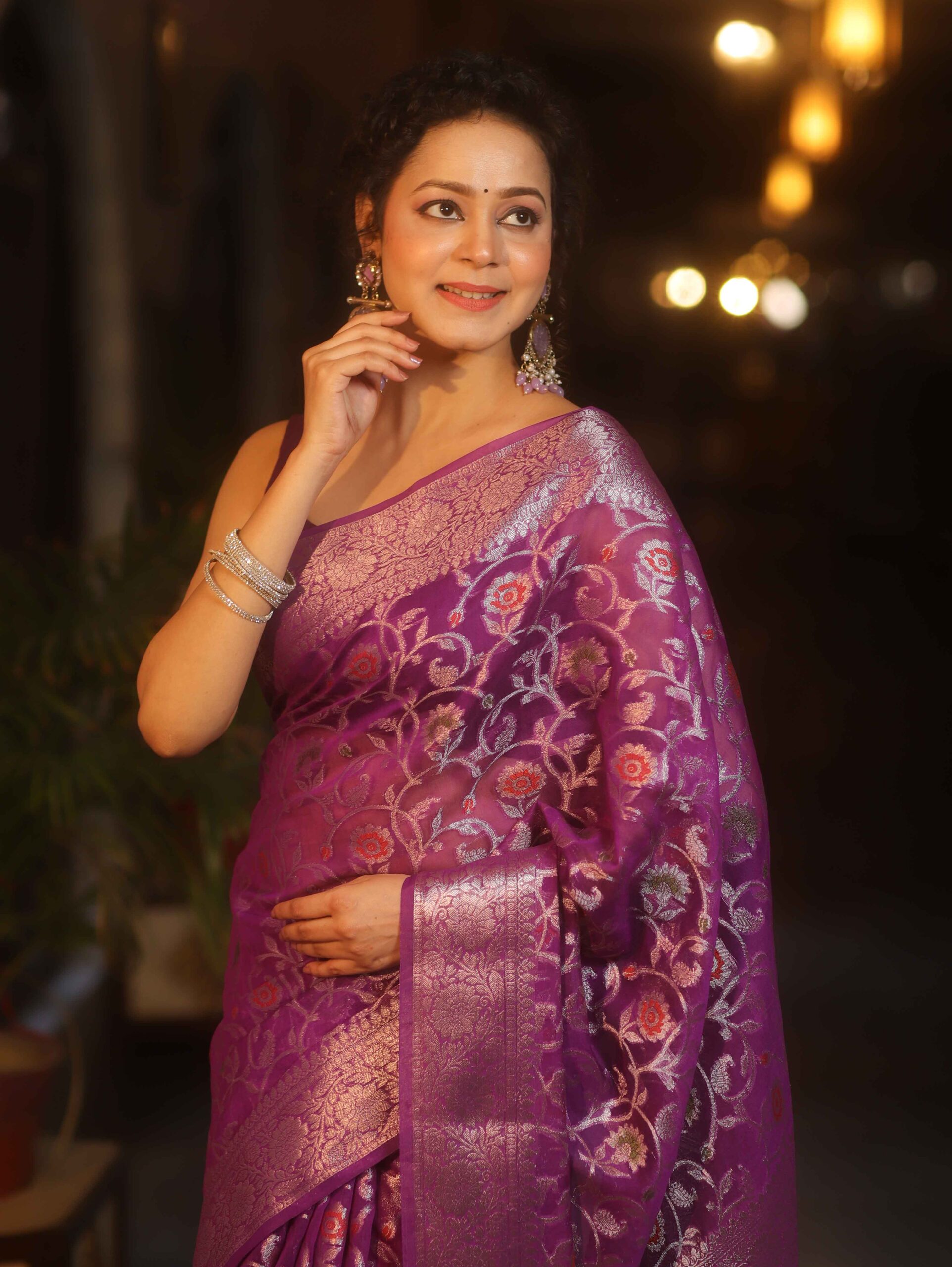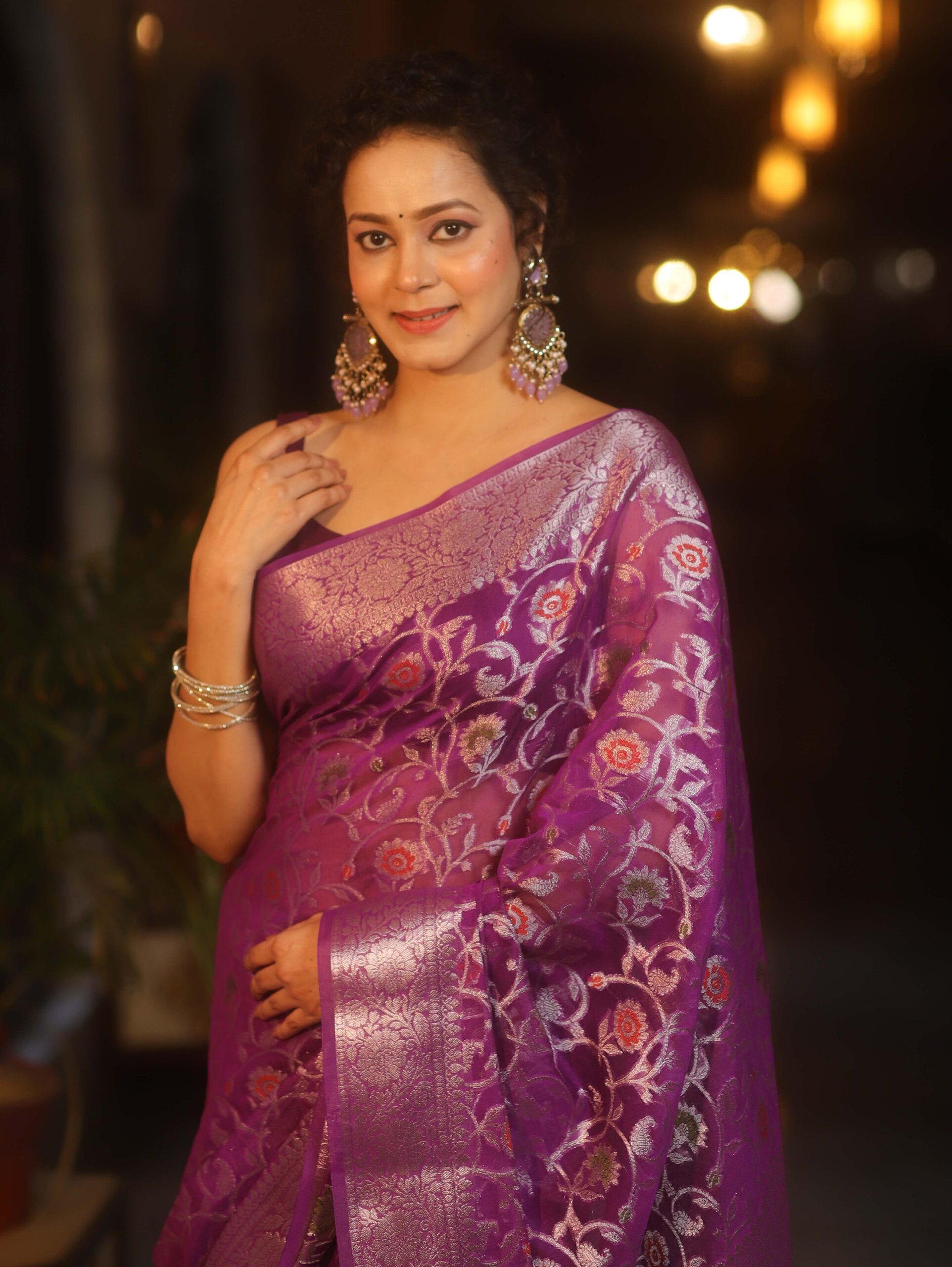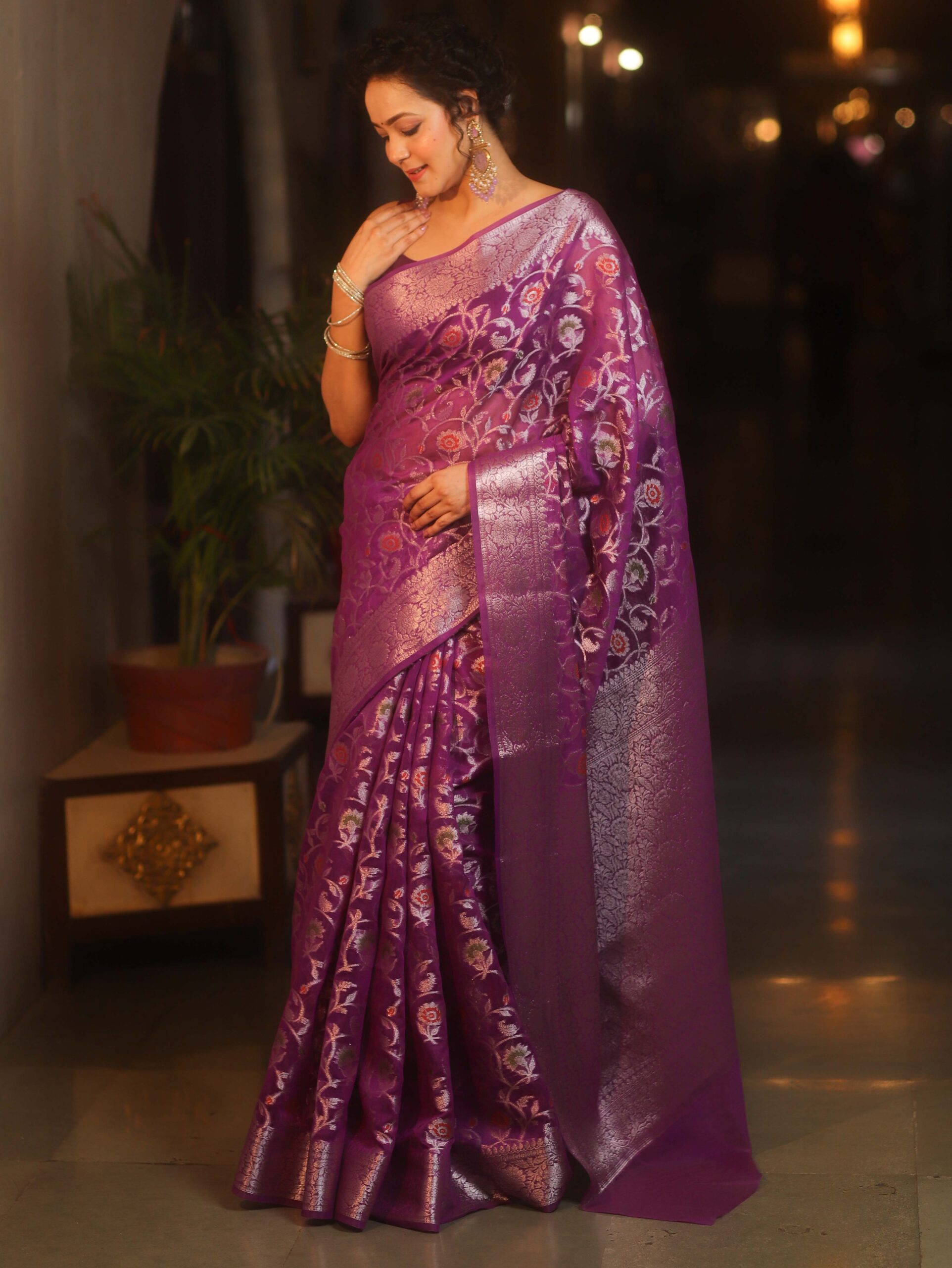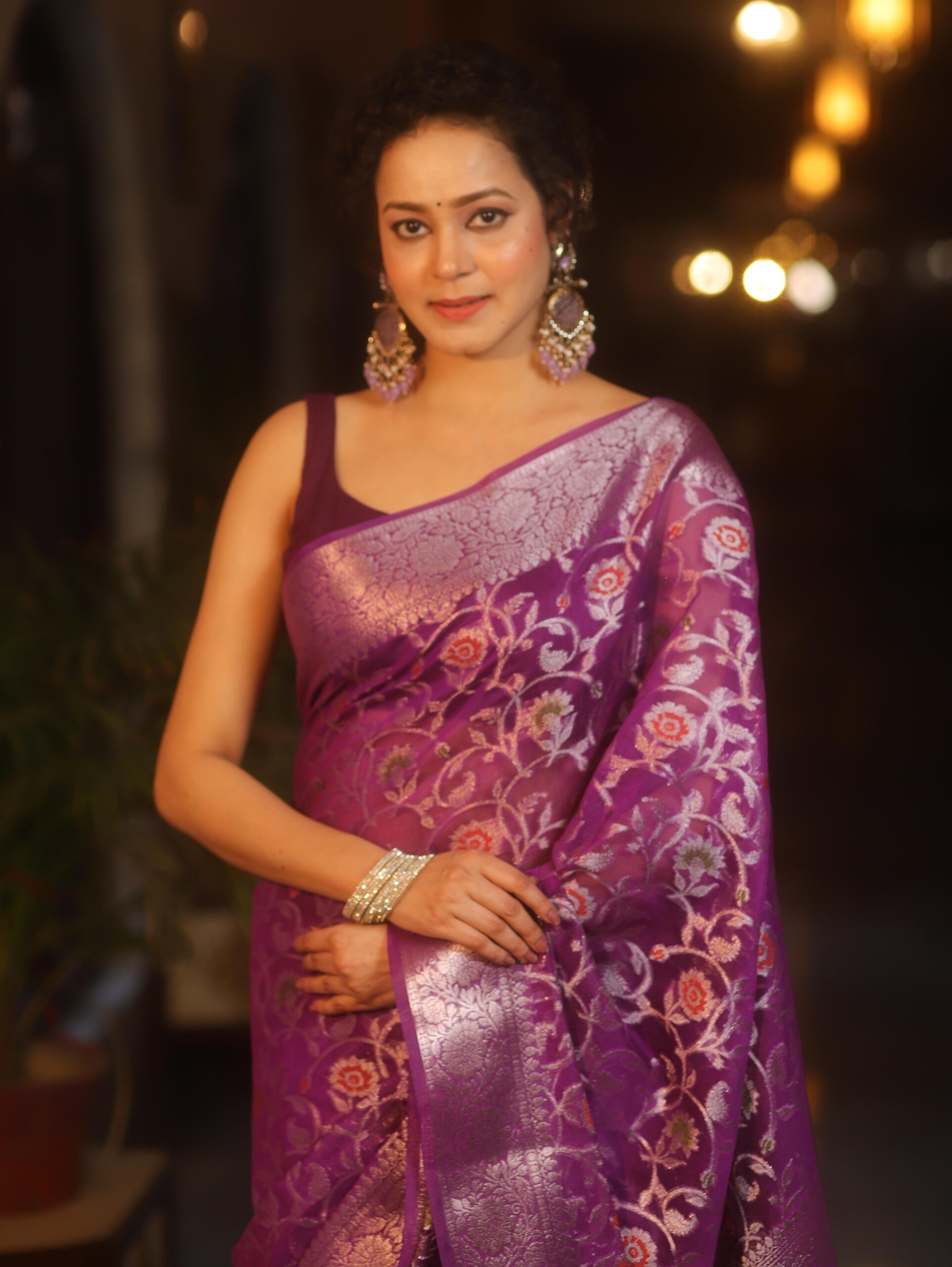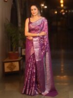 Be the first to review “Banarasee Faux Georgette Saree With Sliver Zari & Resham Jaal Work-Violet” Cancel reply