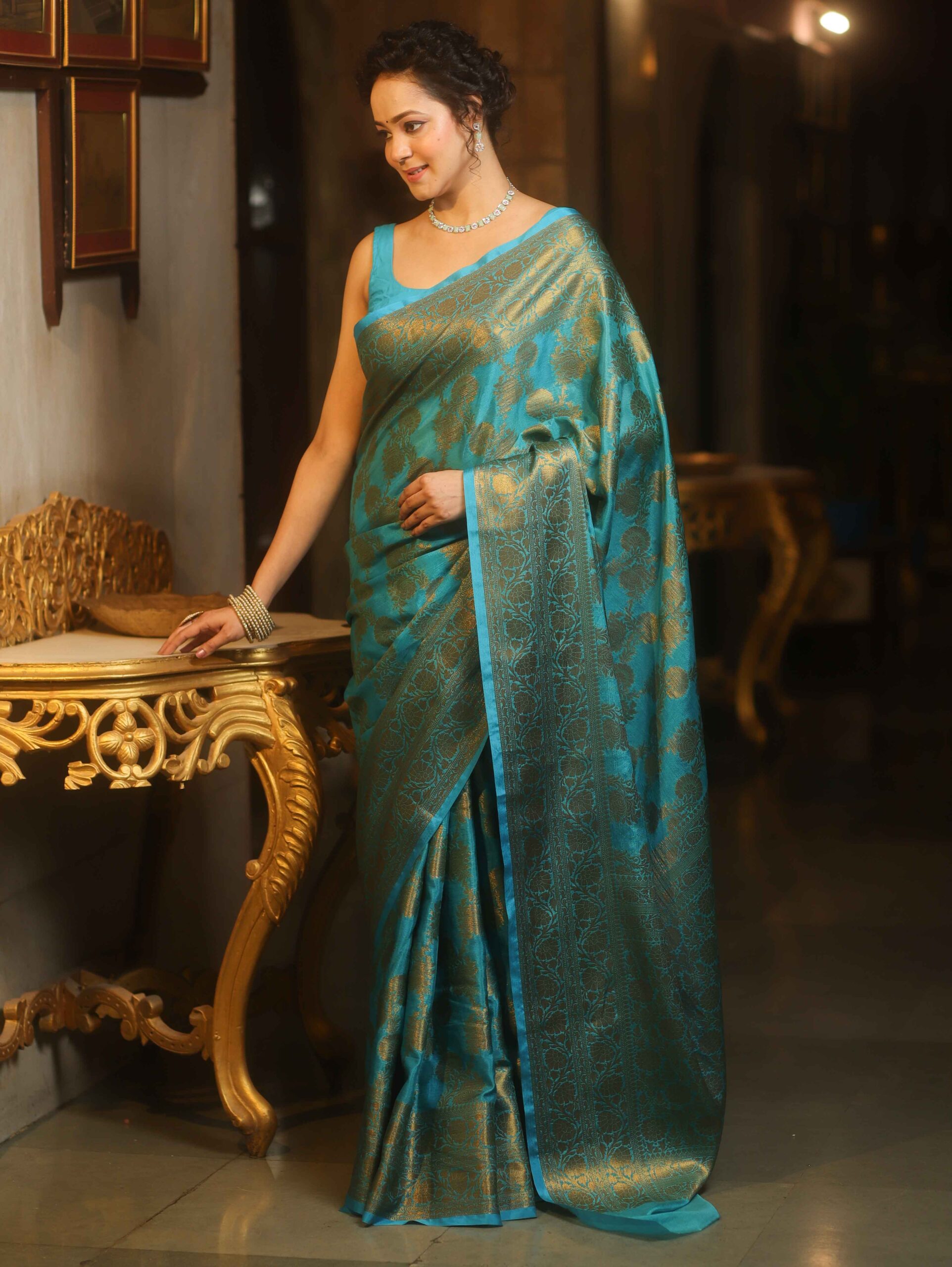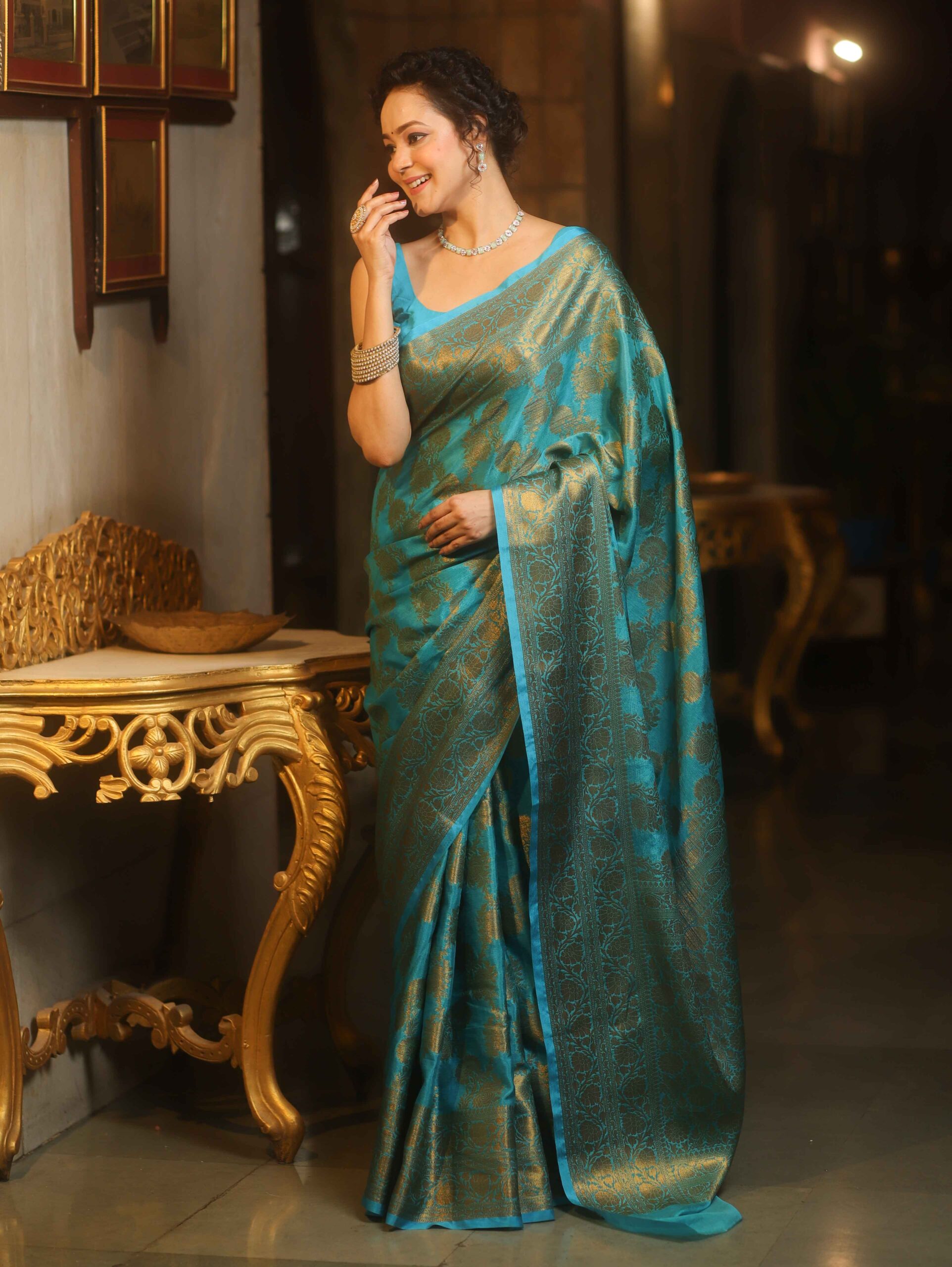 Be the first to review “Banarasee Georgette Saree With Antiue Zari Jaal Design & Border-Blue” Cancel reply