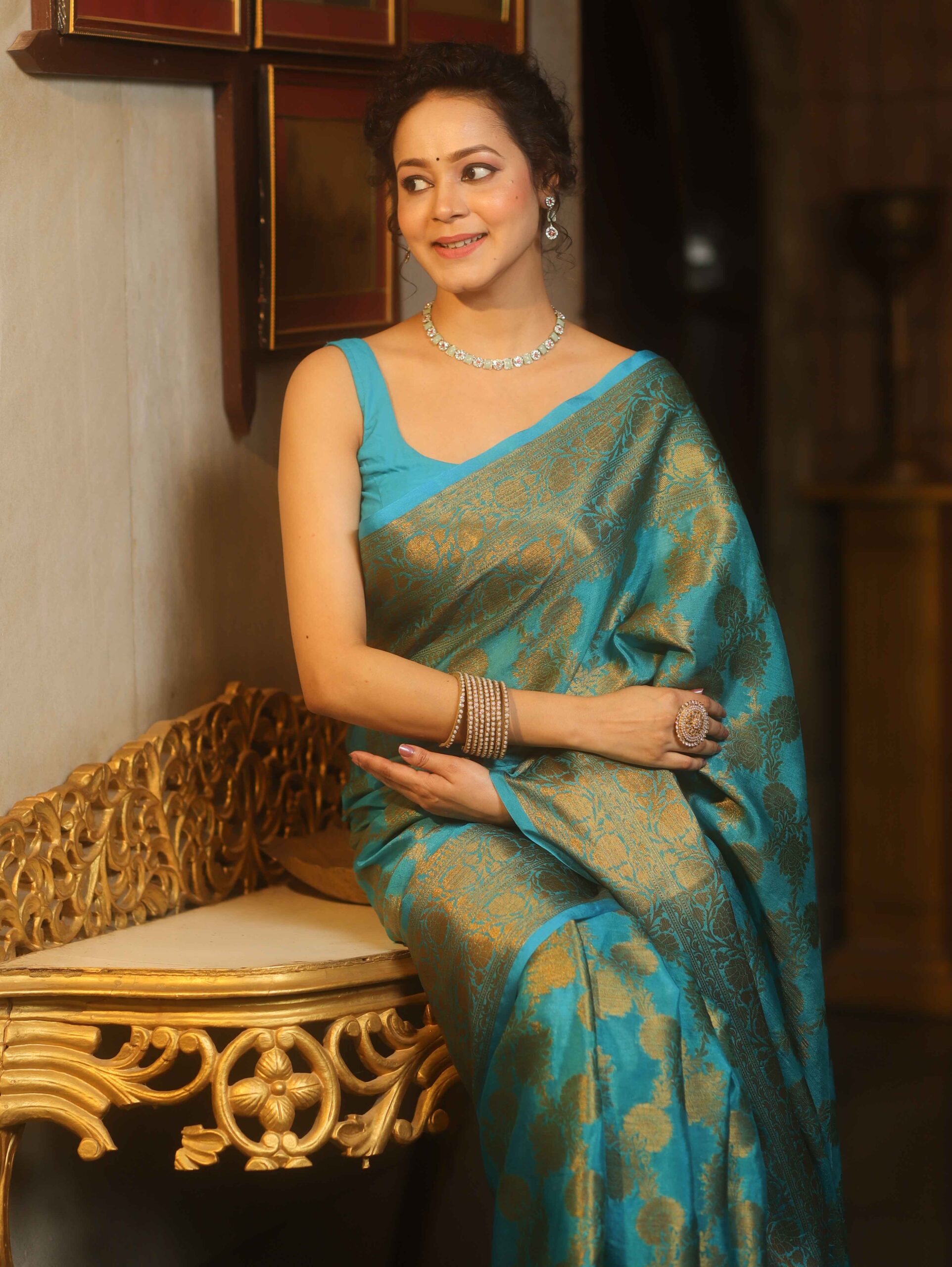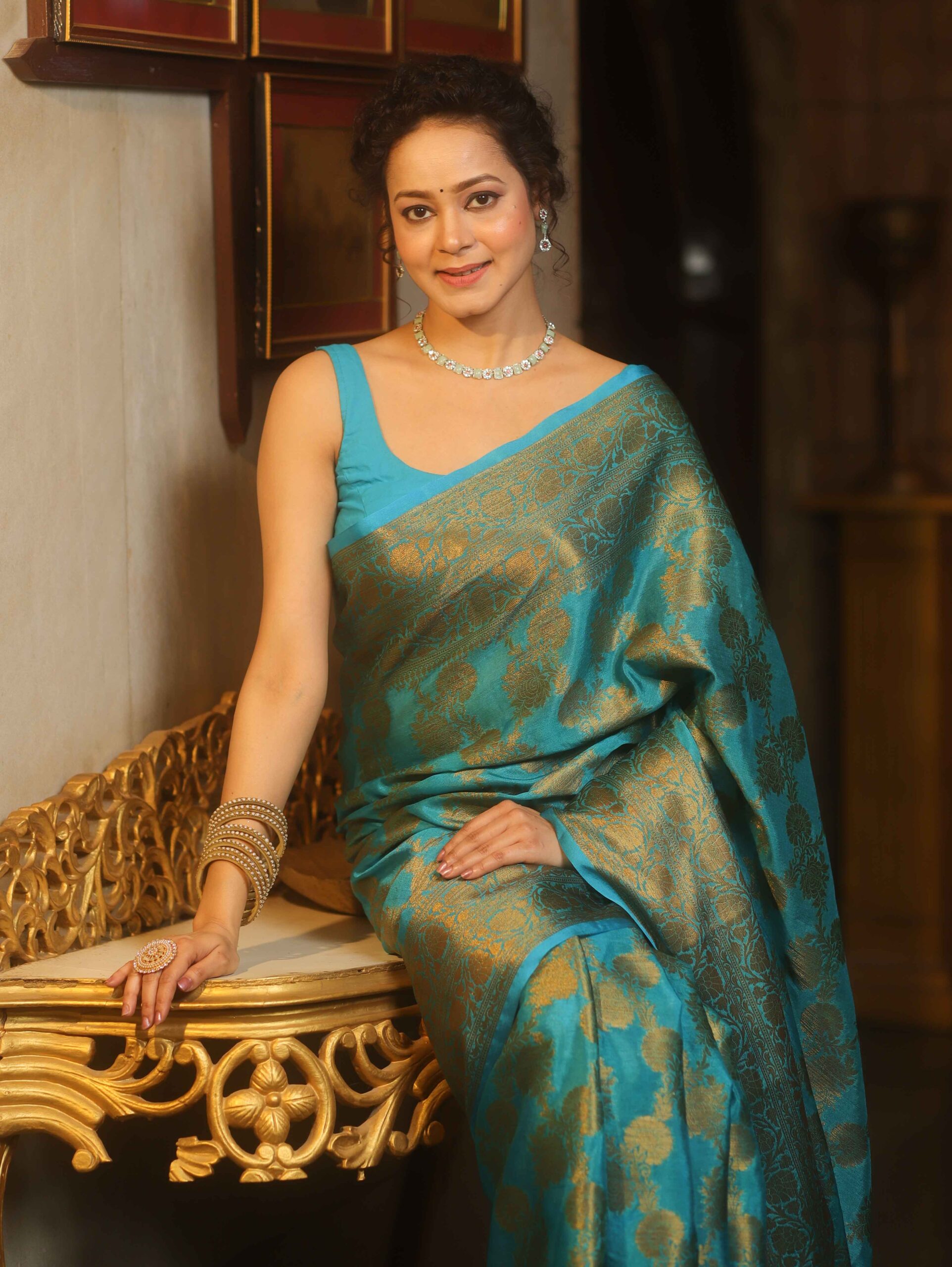 Be the first to review “Banarasee Georgette Saree With Antiue Zari Jaal Design & Border-Blue” Cancel reply
