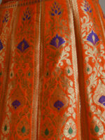 Banarasee Handwoven Art Silk Unstitched Lehenga & Blouse Fabric With Meena Design-Orange