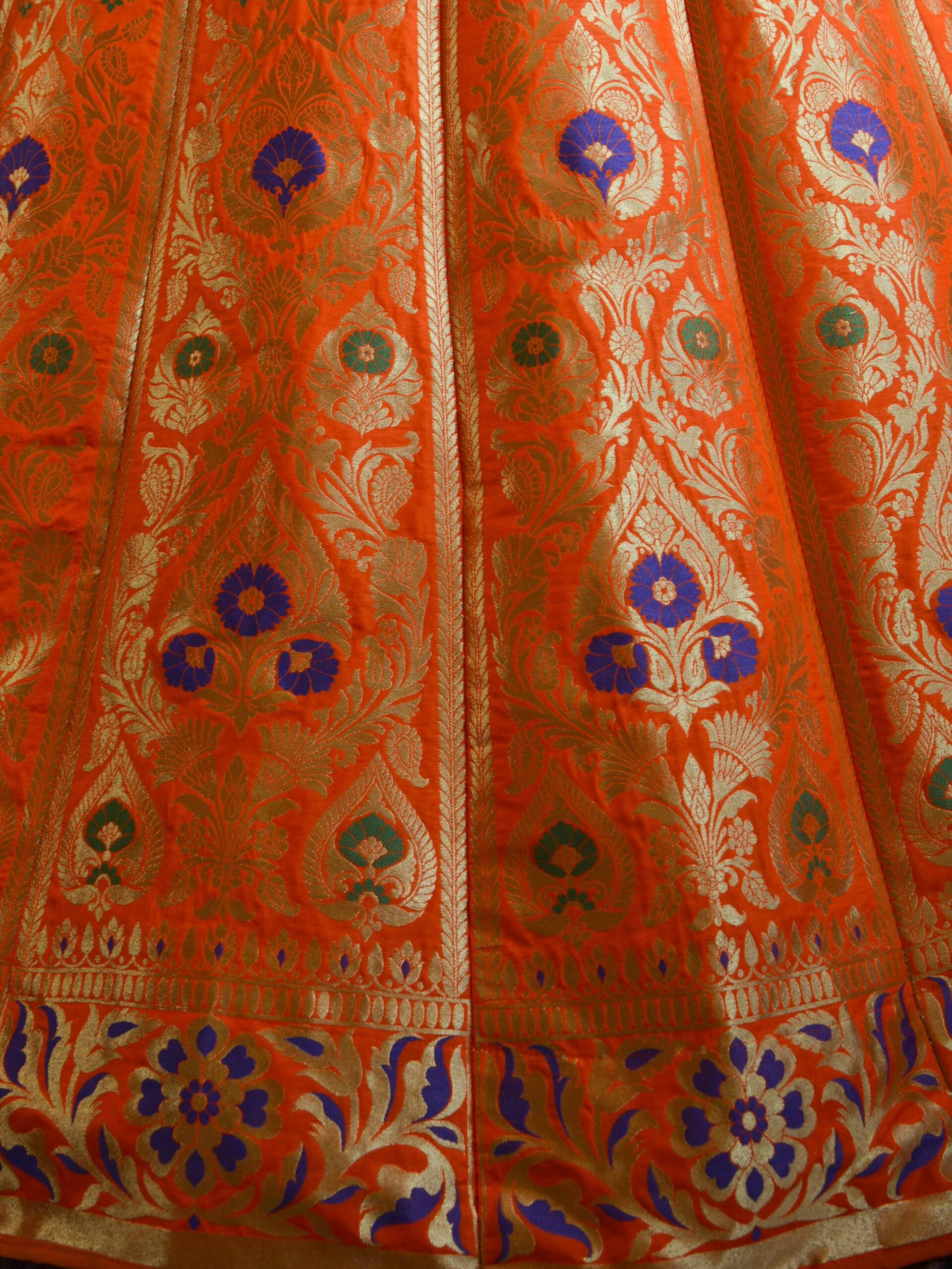 *Fabric is completely unstitched.Kalis are woven on the fabric in the exact same “A” shape, which needs be cut & stitched together in a skirt.