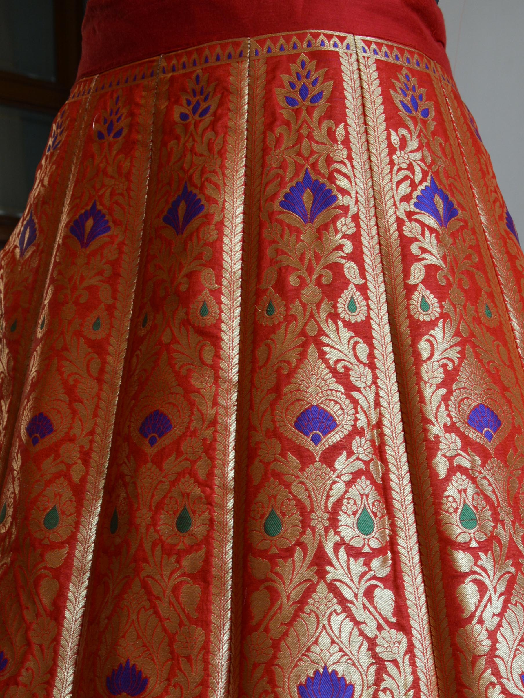 Banarasee Art Silk lehenga fabric with 21 kalis, get it stitched in any style you want and look like a royalty.