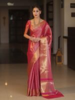 Be the first to review “Banarasee Handwoven Tissue Zari Saree With Gold Broder-Pink” Cancel reply
