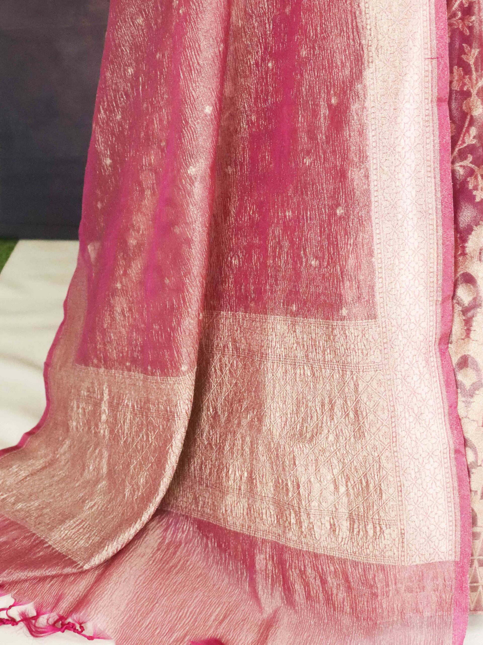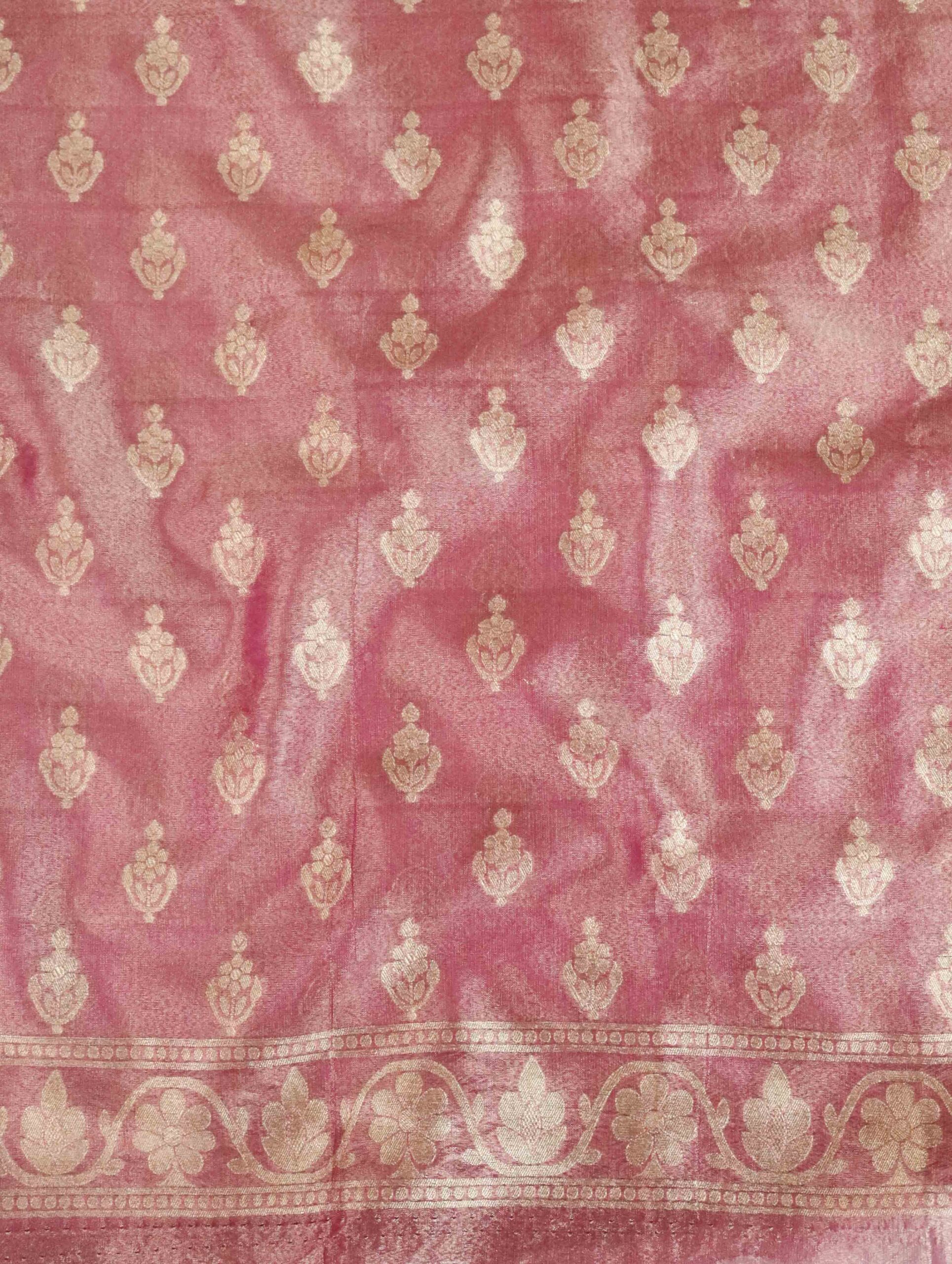 Banarasee Tissue Unstitched Lehenga & Blouse Fabric With Dupatta Set-Pink