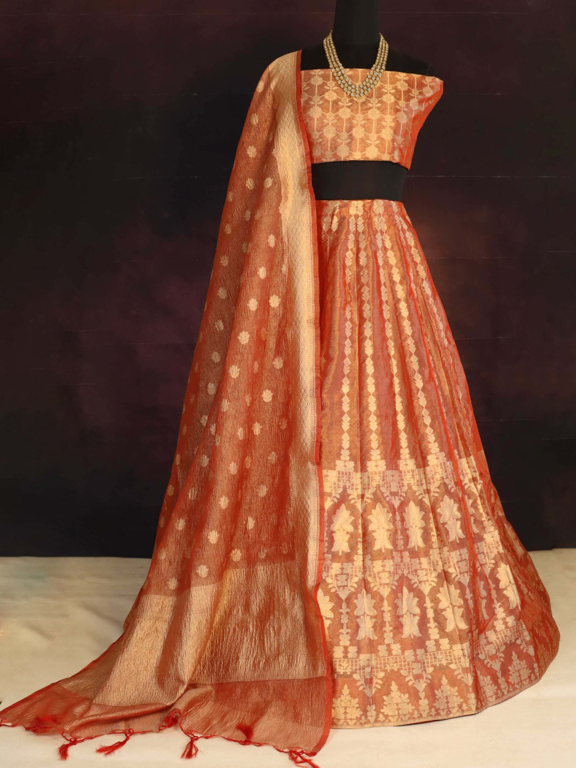 Banarasee Chanderi Cotton Umbrella Cut Lehenga, with blouse