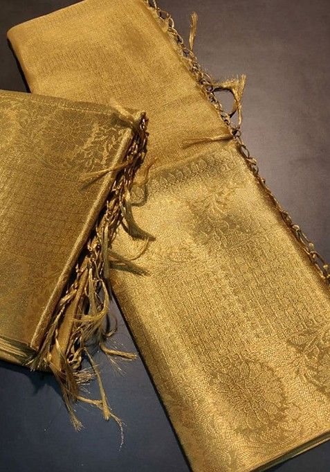 Home Sarees Beige Woven Tissue Saree Set