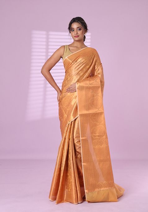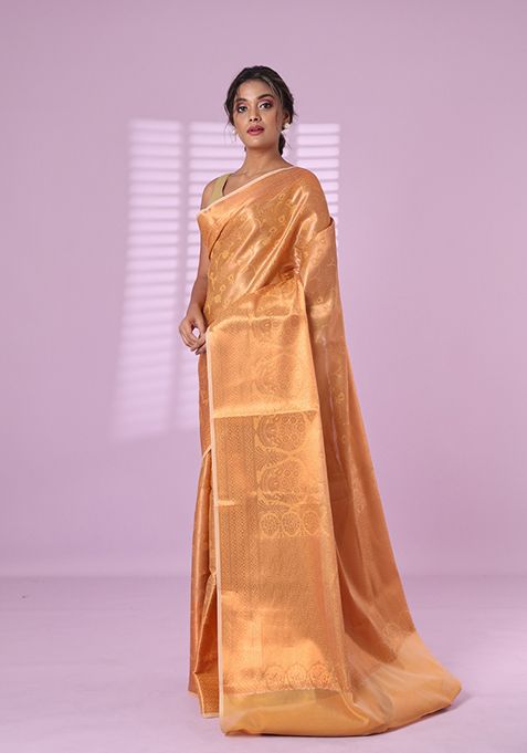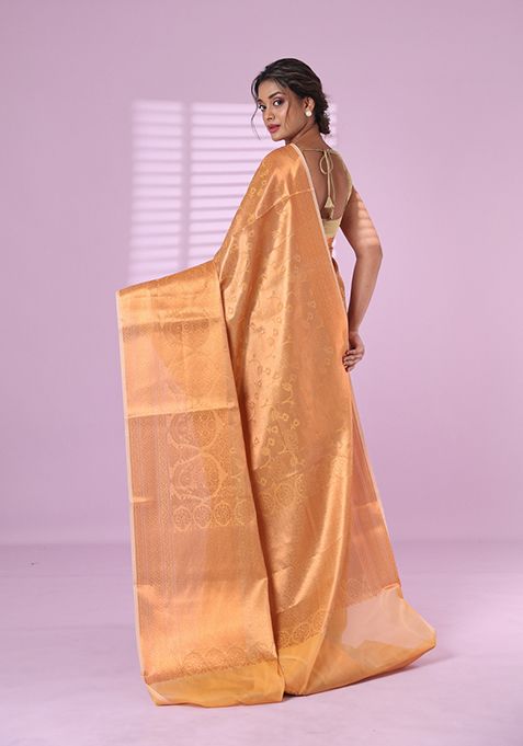 Beige Zari Work Silk Saree Set – XSR43543