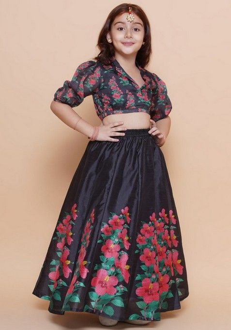 Black Printed Lehenga With Blouse (Set of 2)