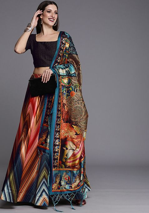 Black Printed Satin Silk Lehenga Set – XLH01899