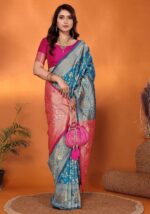 Blue Zari Kanjeevaram Silk Saree Set – XSR49829
