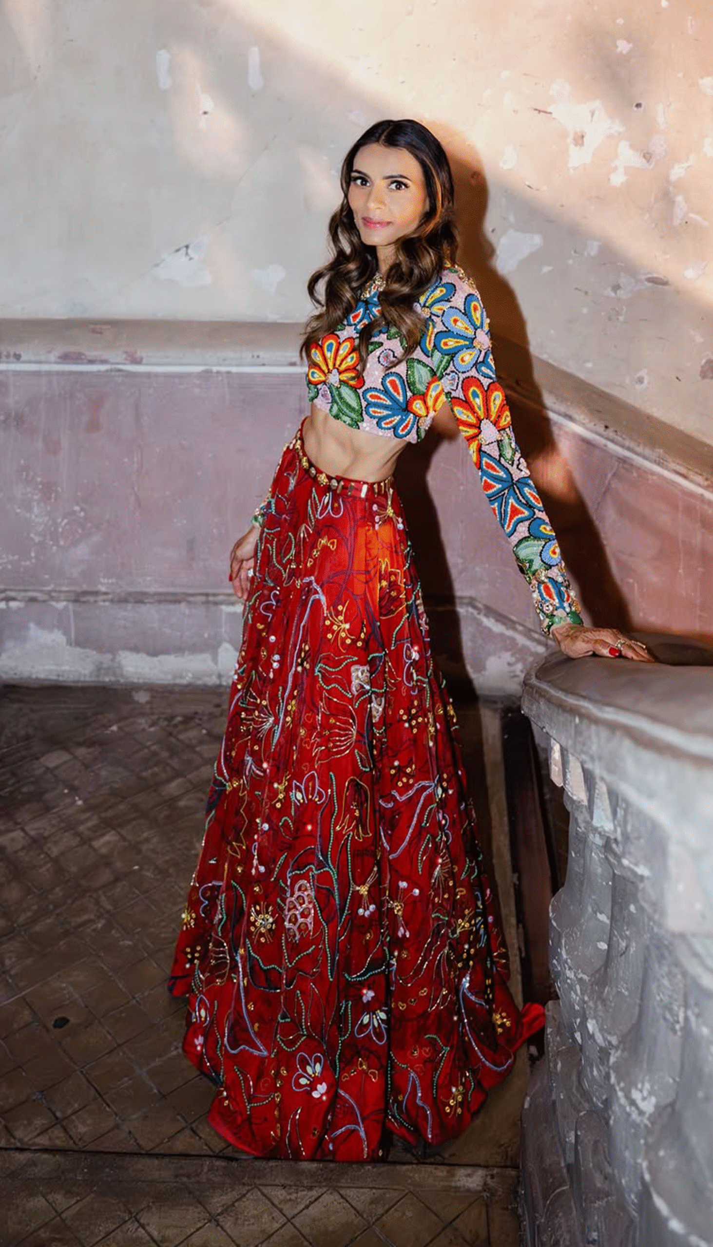 Pink Lehenga Set With Hand Embroidered Blouse And Dupatta