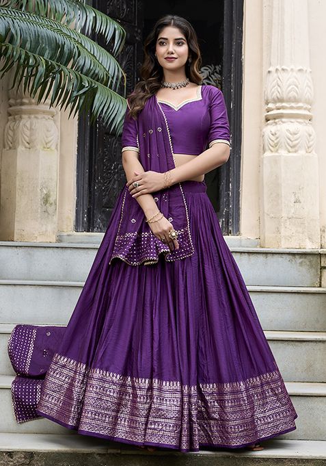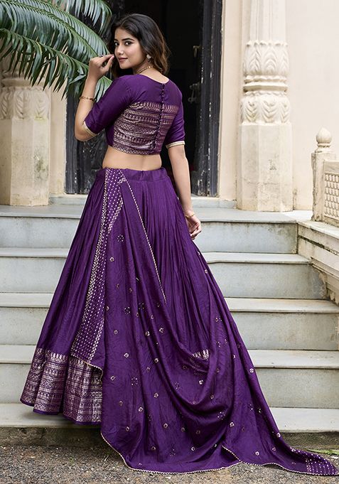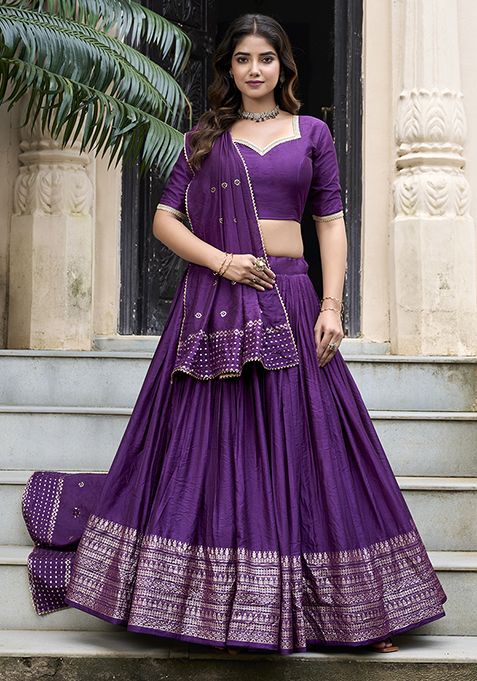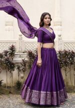 Dark Purple Zari Woven Pure Chanderi Lehenga Set – XLH05527