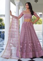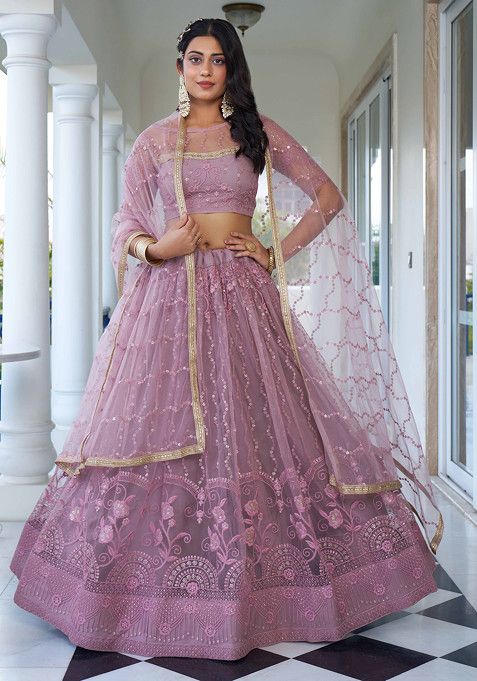 Dusty Pink Thread Sequin Embroidered Net Lehenga – XLH02295