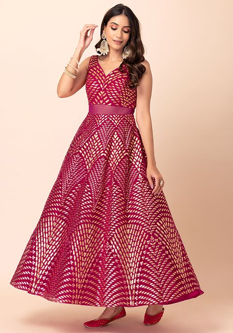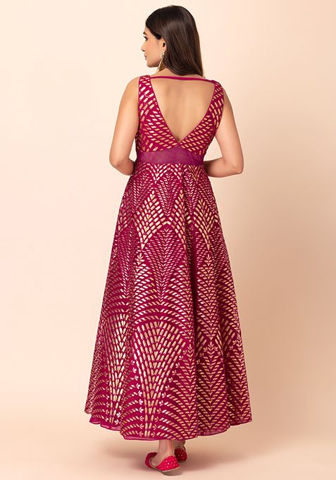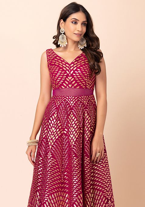 Fuchsia Pink Foil And Thread Embroidered Anarkali Gown – ILG00033