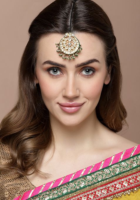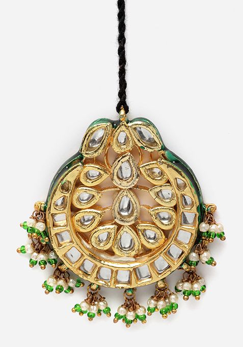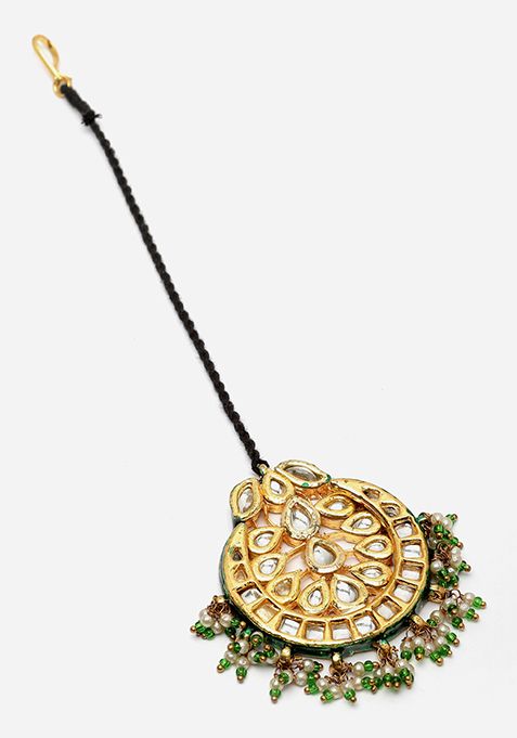 Gold And Green Pearl Kundan Maangtika – IJM00029