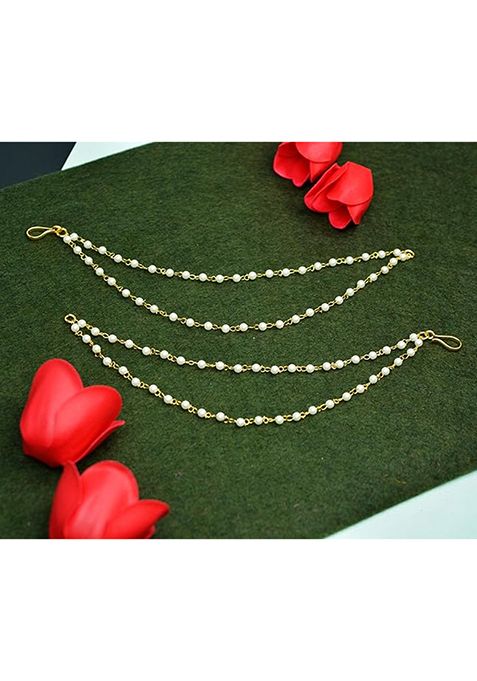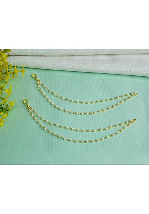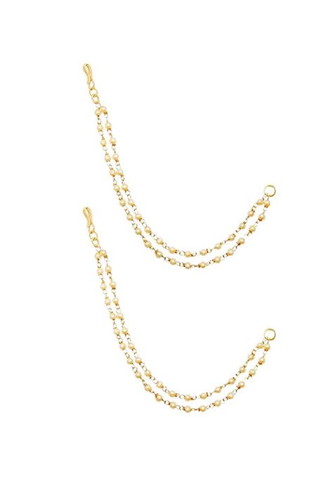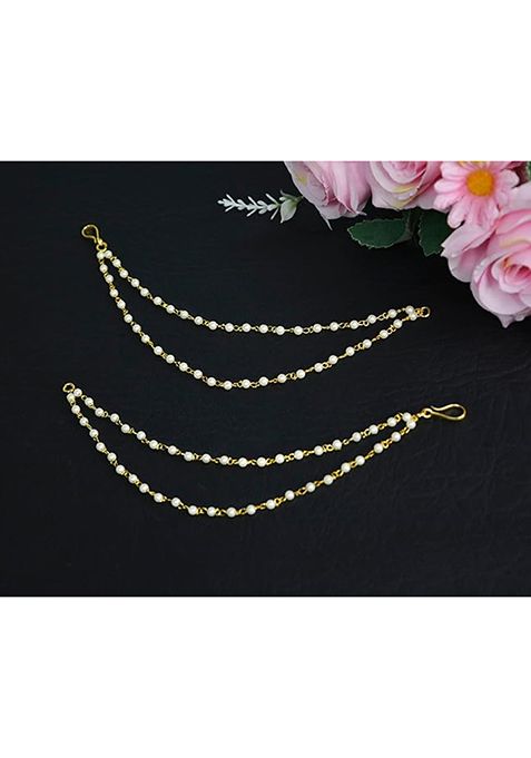 Home Jewellery Gold Pearl Studded Classic Gold Plated 2 Line Ear Chain Ear Cuff