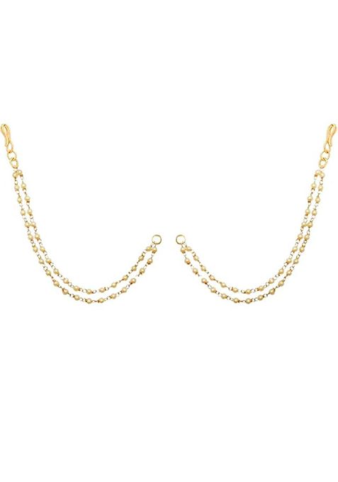Gold Pearl Studded Classic Gold Plated 2 Line Ear Chain Ear Cuff – XJE03562