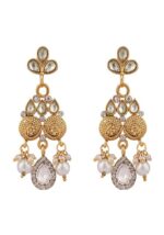 Silver Pearl Bead Kundan Maangtika With Chandbali Earrings