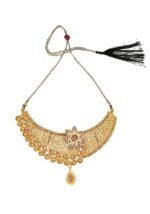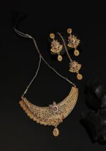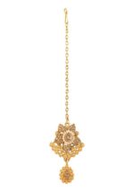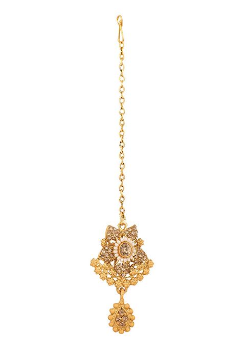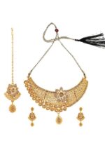 Gold Plated Artificial Stone And Bead Necklace Set With Maang Tikka – XJS00744