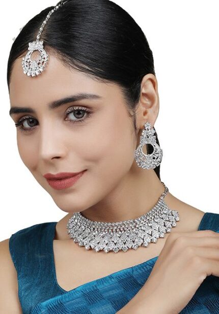 Gold Plated Artificial Stone And Bead Necklace Set With Maang Tikka – XJS00744