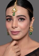 Be the first to review “Gold Tone Green Bead Kundan Earrings And Mangtika” Cancel reply