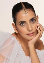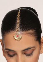 Gold Tone Red Temple Maangtika – IJH00039