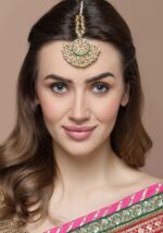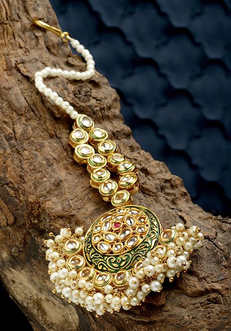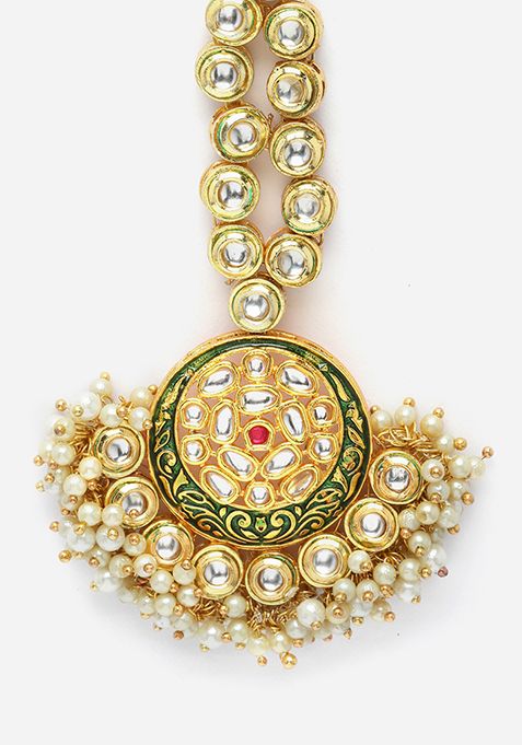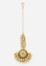 Green And Gold Kundan Pearl Maangtika – IJM00028