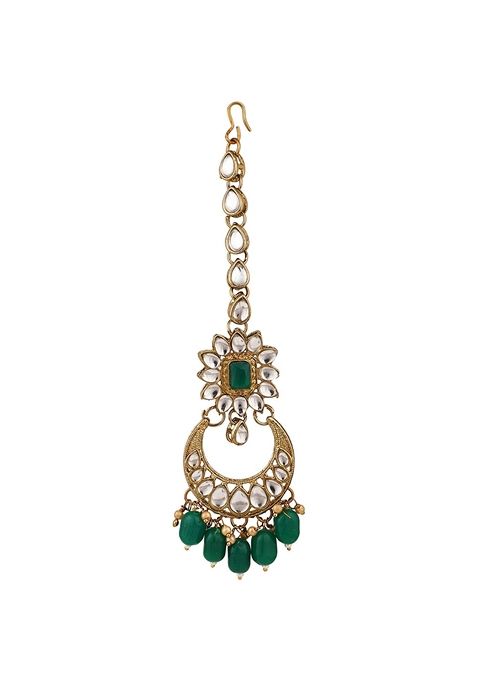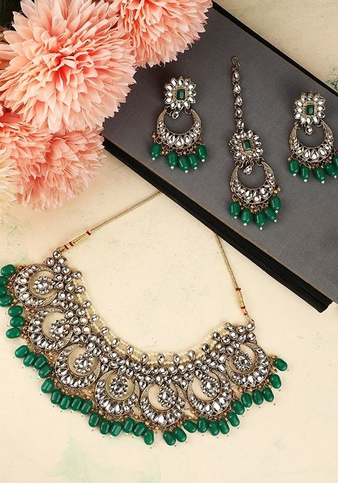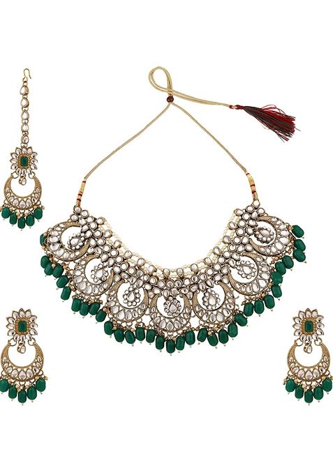 Green Cubic Zirconia Necklace Set With Maang Tikka – XJS02285