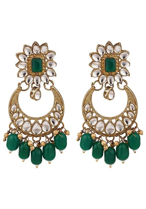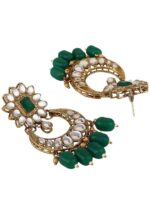 Golden Kundan Meenakari Work Earrings With Maang Tikka