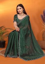 Green Embellished Poly Blend Saree Set – XSR49803
