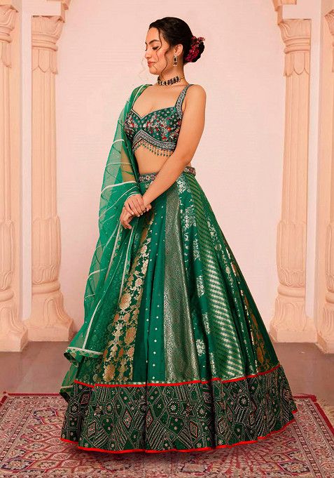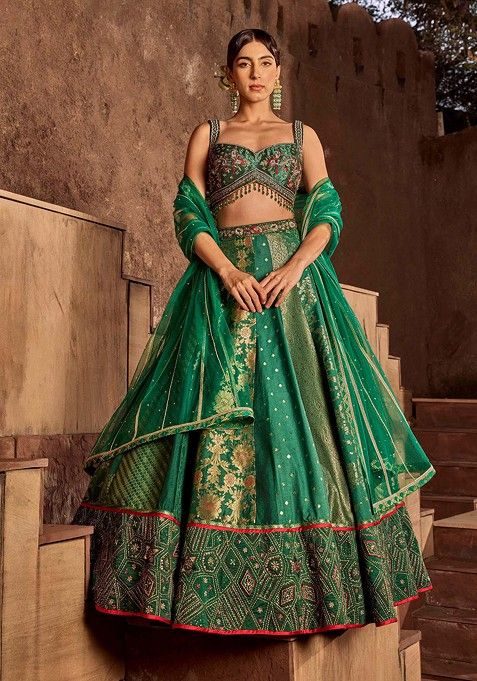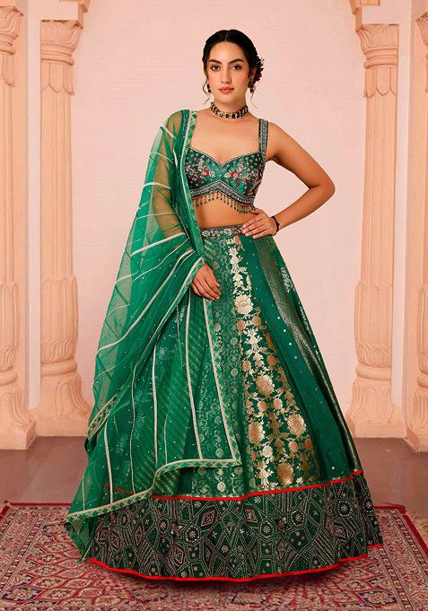 Green Lehenga Set With Hand Embroidered Blouse And Dupatta – DLS01083