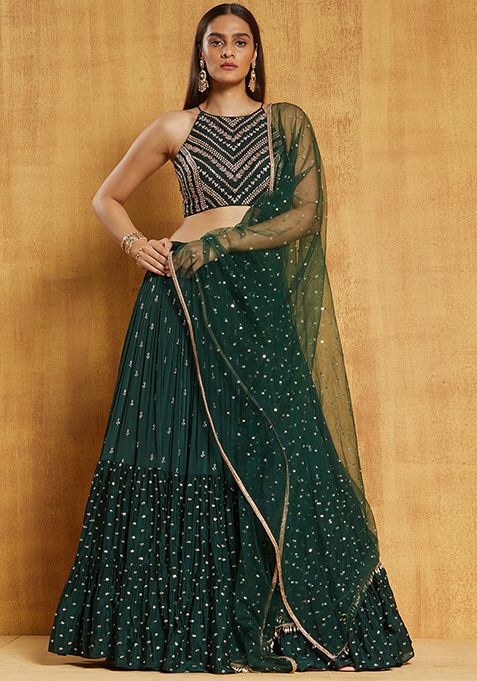 Green Sequin Embroidered Georgette Lehenga Set – XLH07185