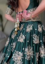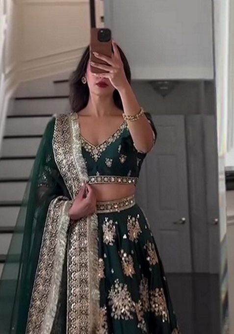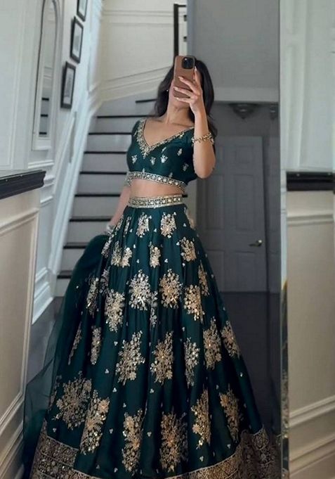 Green Sequin Thread Embroidered Satin Silk Lehenga Set – XLH06868