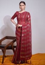 Maroon Sequin Embroidered Georgette Saree Set – XSR28850