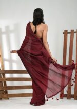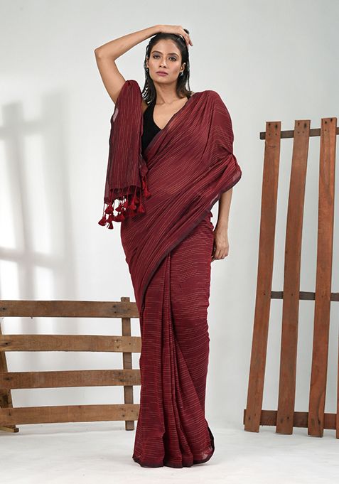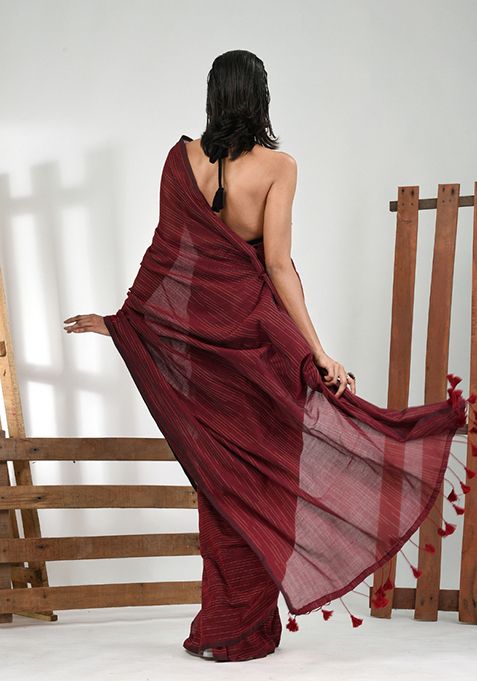Maroon Solid Cotton Saree Set – XSR43962