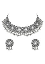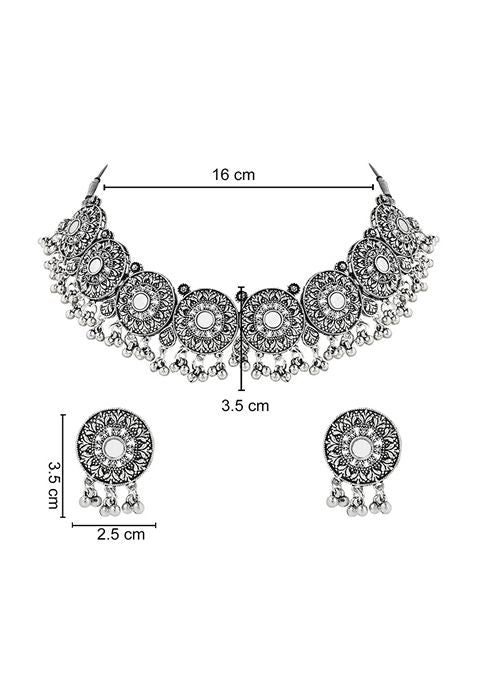 Navratri Ethnic Silver Oxidized Traditional Afghani Choker Necklace Jewellery Set – XJS01816